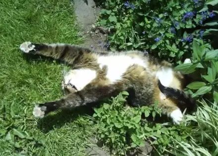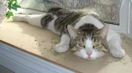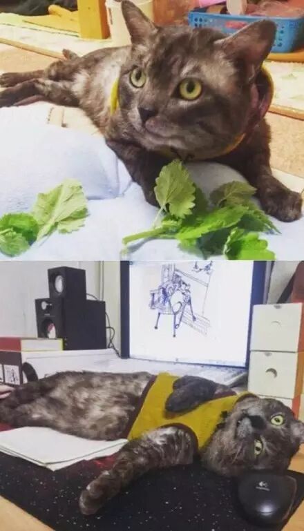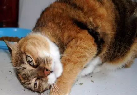 网友@成噩思汗:猫的大麻 我家猫吃了猫薄荷 幻想自己是兔子 跳着下楼梯