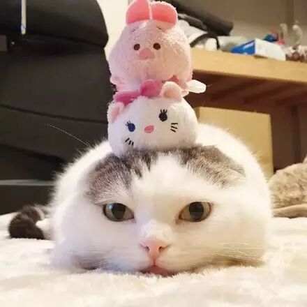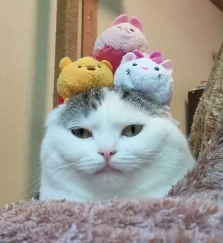 猫奴们都知道,想要把物品放在猫咪头上是一件多困难的事情,那可是在太岁头上动土的事啊!不过岛国有对猫,那脾气超级温驯乖巧,还很喜欢和主人一起玩头顶叠叠乐!