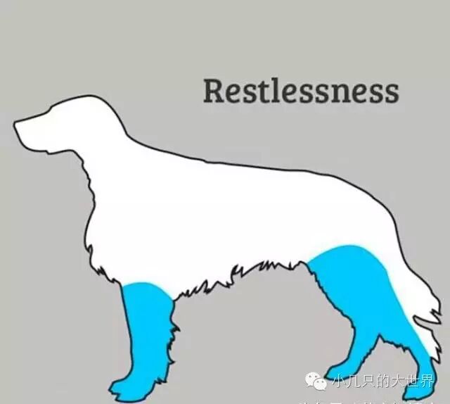 其实活泼跟焦虑还是有很明显的差别的!当狗狗呈现焦虑、躁动不安情况的时候,就表示它们想要告诉你有些事情不太对劲了。狗狗会透过低鸣,发抖、不停的踱步,同时会有不安的表情,这些都是要来告诉你它不舒服的讯号,虽然不一定是有疾病,但当它们主动向你展现这种样子的时候别忽略了,它们只是需要你的帮助而已,最好可以带狗狗去检查一下。