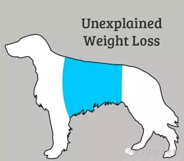 当狗狗突然变瘦的时候,千万要注意!这可能是代表狗狗的新陈代谢、肌肉或是心脏有问题,甚至可能是因为癌症,这些原因都会让狗狗的食欲变差,导致体重突然变轻,如果你发现狗狗的体重掉了约 10 %的话,你最好马上带狗狗去看医生!