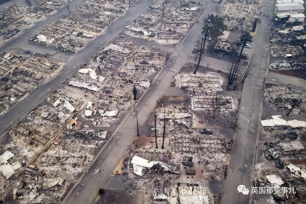 大火所到之处一片狼藉,房屋都被夷为平地……