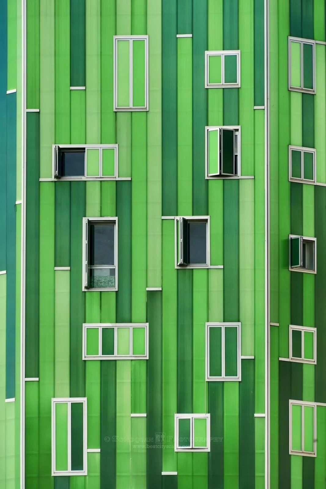 一座无名的公寓楼。马德里可以见到很多大胆创意的现代建筑,被称为现代建筑的实验场。