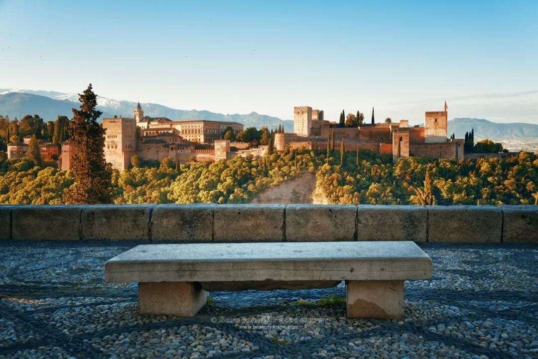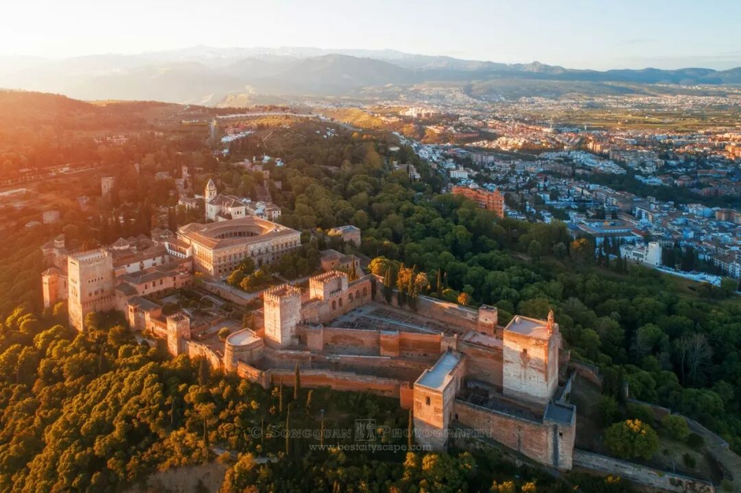 Granada日出时分的皇宫。没有订到皇宫的门票,成为西班牙之行的一大遗憾。不过我的小飞机可没闲着,把皇宫免费参观了个遍。