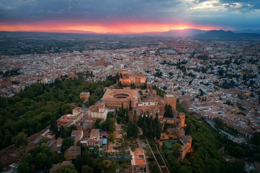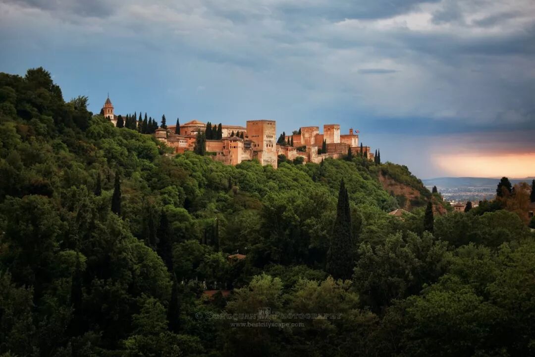 阴云密布的格拉纳达,赏脸的留下天际一抹红。