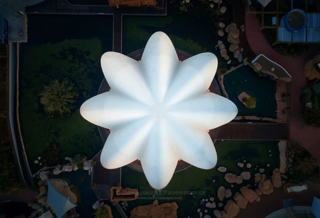 海洋馆的俯视图案,像极了一朵开放的白莲花。