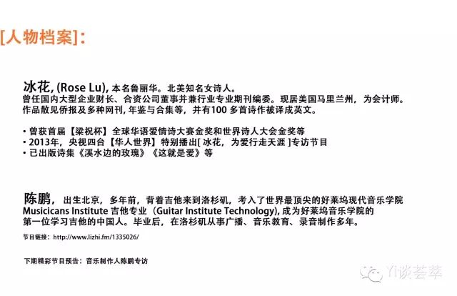 功能介绍 以朗诵为媒,介绍海内外优秀诗歌及其他自创文艺作品.
