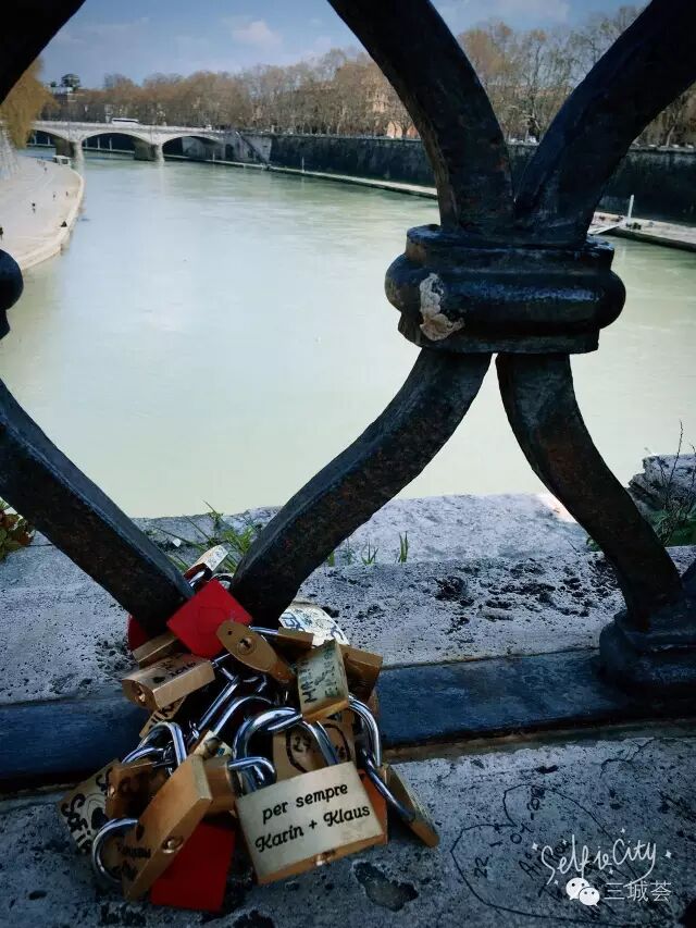 同心锁上是意大利文。 我特意查了一下,per sempre的意思就是永远, forever! 哎,全世界的人呀都非要有这个心结。世上有什么是永恒的?对了,罗马是永恒的!