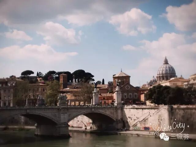 从梵蒂冈教廷离开,你不会错过穿越罗马的台伯河,近在咫尺,然后在25公里之外入海。河上最著名的就是圣天使桥,连接西岸的圣天使堡和东岸Ponte(桥)区。在过去的时代,朝圣者经过此桥前往圣彼得大殿,因此它也被称为“圣彼得桥”。6世纪时,教宗额我略一世将城堡和此桥都以“圣天使”命名,传说天使长(就是天使大总管)迈克尔(Michael) 在城堡的屋顶显现,宣布黑死病的结束。在1450年的禧年,由于大量朝圣者的到来,许多人落在河里淹死,故拆除了桥头的房屋以及一个罗马凯旋门,以便拓宽朝圣的通道。