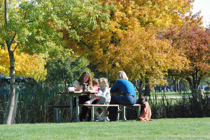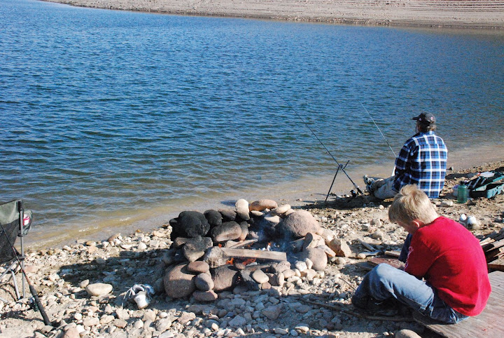 ↑深秋的Idaho已冷风飕飕,周日升篝火在湖边垂钓的人们
