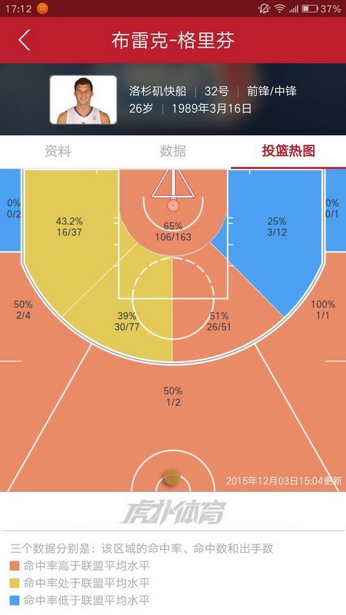 2.格里芬,作为大前,三个三分区域红色(虽然出手少),正面中投也很准