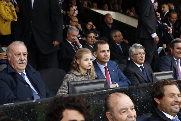 板鸭国王felipe VI带着女儿看上场马竞和拜仁,他爹老国王是皇马粉,据说他更挺草根队,希望小美女给他们带来好运