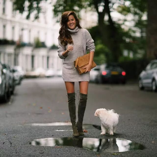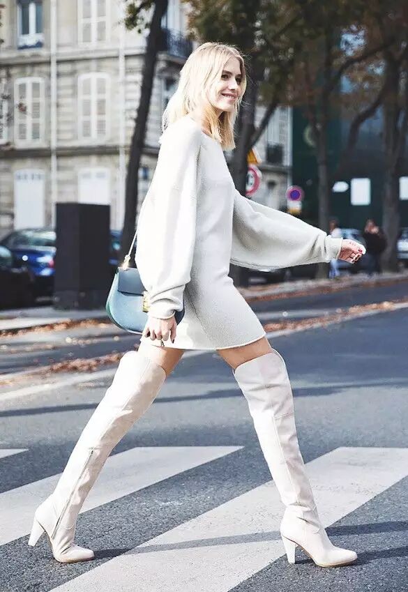 没人能够抵御这种明目张胆的诱惑,尤其是当你光腿穿过膝靴,只露出一点点大腿,性感得一塌糊涂。在这落叶飘飞的秋末,最时髦简洁的装扮就是一双过膝靴+毛衣裙/短裙/短裤的搭配,过膝靴包裹住小腿,只露出一点点大腿,立刻化身性感女郎。