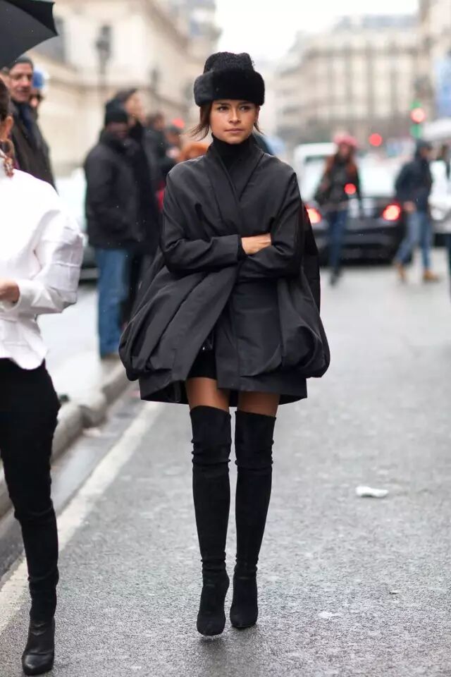 要问最显腿长的颜色是什么?毫无疑问就是黑色!尤其是针对第一次入手的姑娘来说。但时装精们当然可以根据搭配的服装颜色来选择最适合当天过膝靴的颜色。尽量减少过膝靴带来的切割感,会使你整体的线条流畅,凸显腿型的美感。