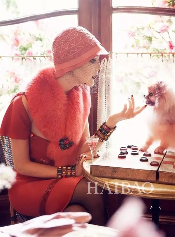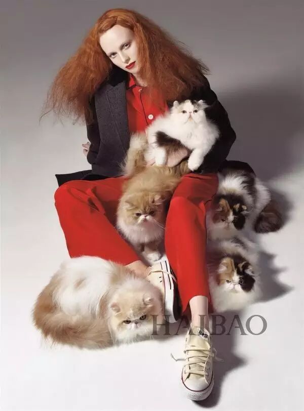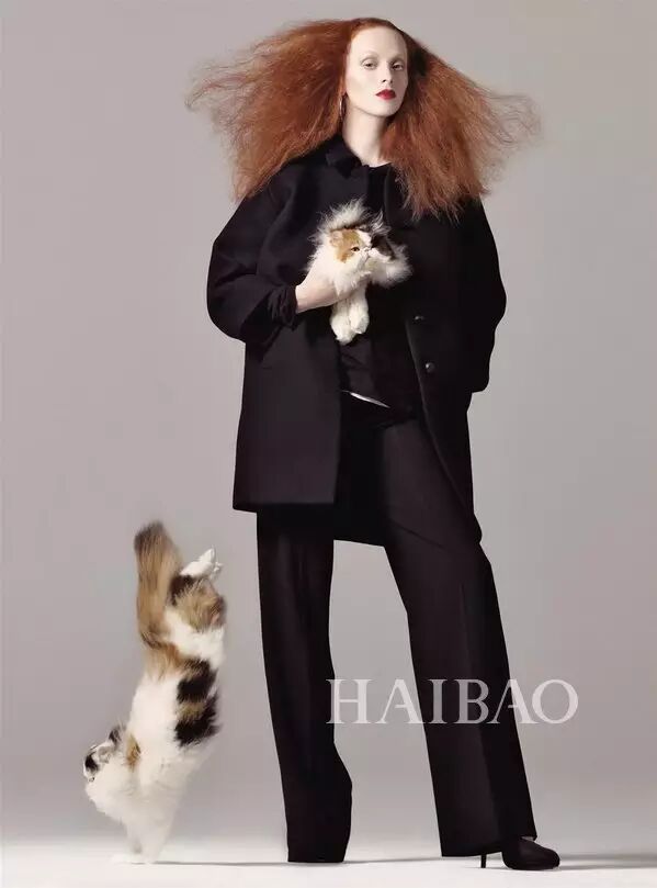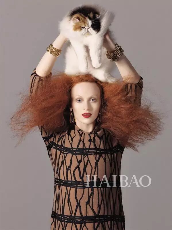 一头蓬松红发的凯伦·艾尔森 (Karen Elson) 常常在杂志大片中作为格蕾丝·柯丁顿 (Grace Coddington) 的化身出镜。这组由史蒂文·梅塞(Steven Meisel) 掌镜的时尚大片,即由格蕾丝·柯丁顿 (Grace Coddington) 造型、并带来家中爱猫共同演绎。