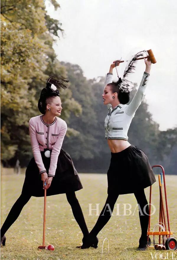 模特Kristy Hume和Shalom Harlow演绎《Vogue》杂志美国版1994年10月刊时尚大片