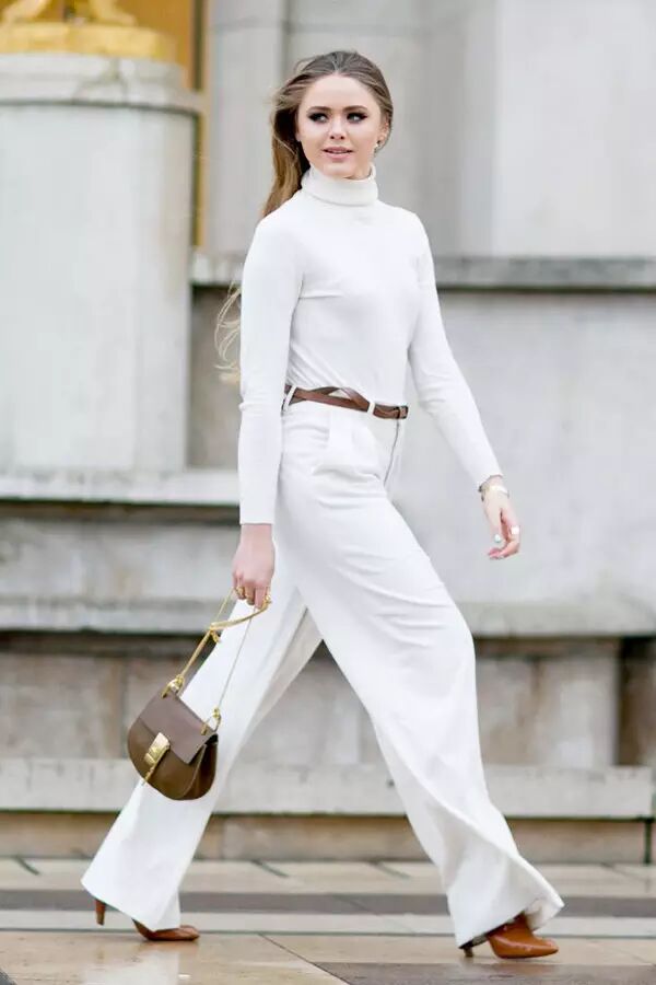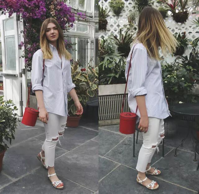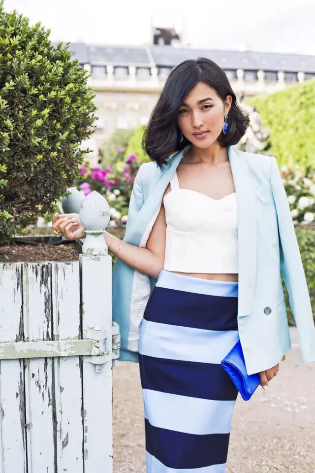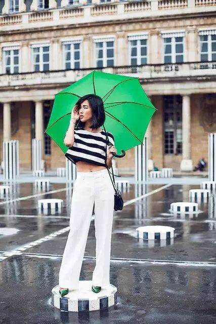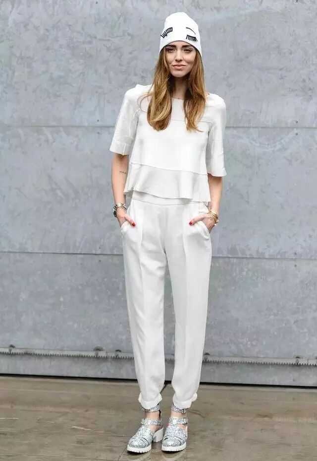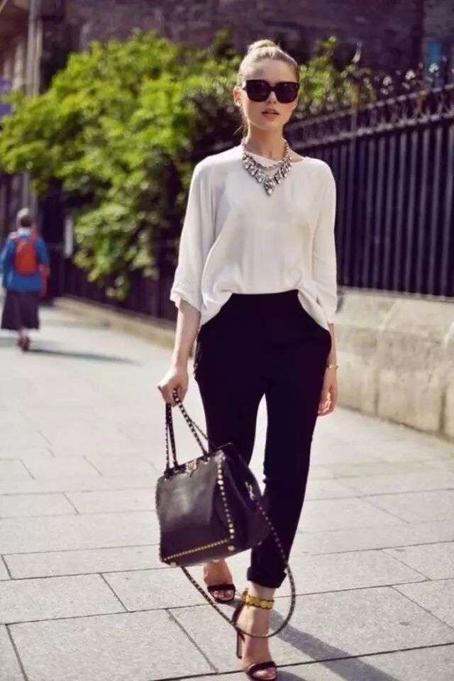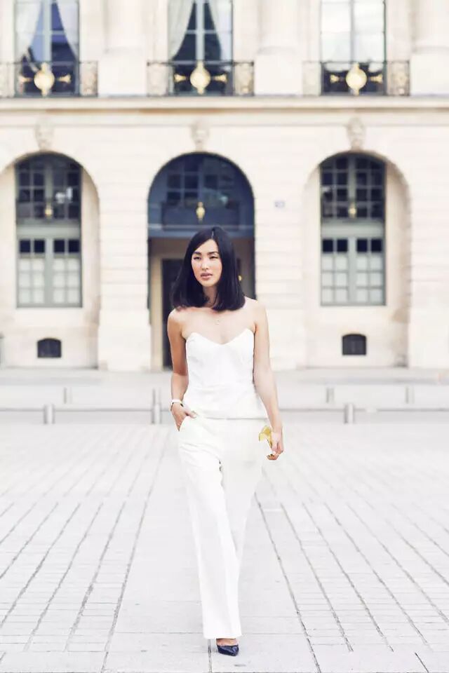 这张照片就更加明显了,上半身看起来很纤细,但是裤装完全暴露了身材的短板,圆润的臀部和大象腿完全暴露了时尚博主Kristinabazan的梨形身材。