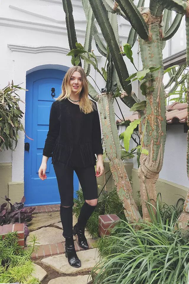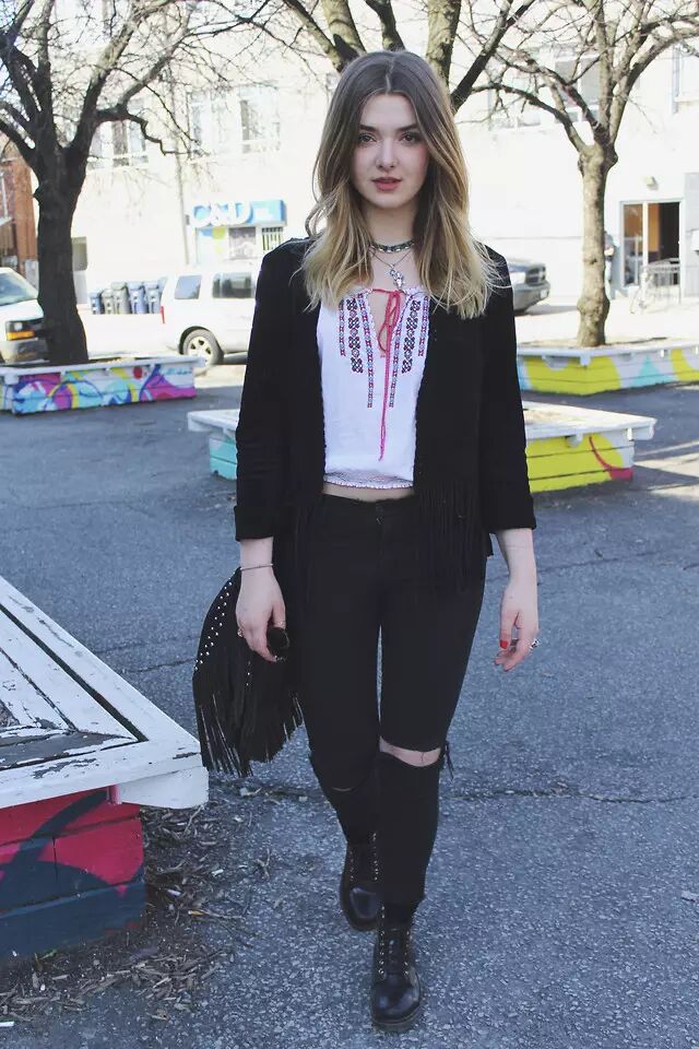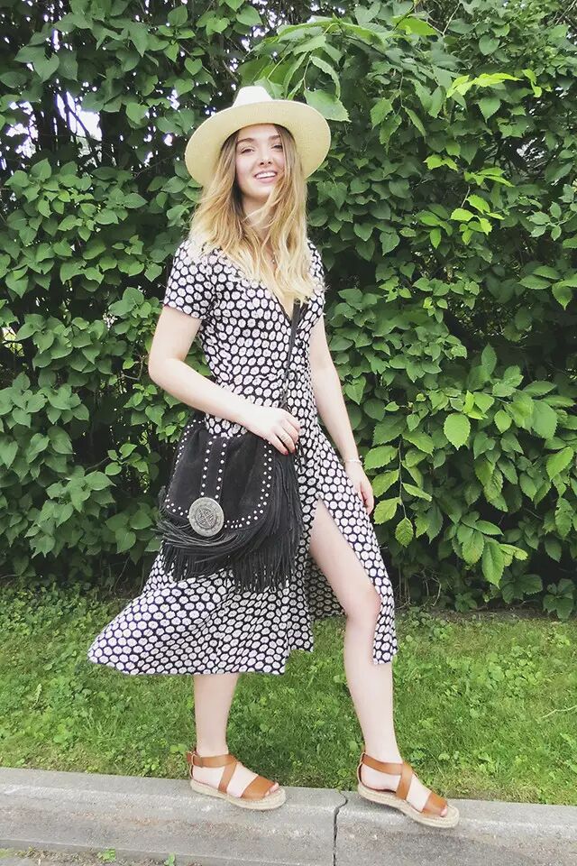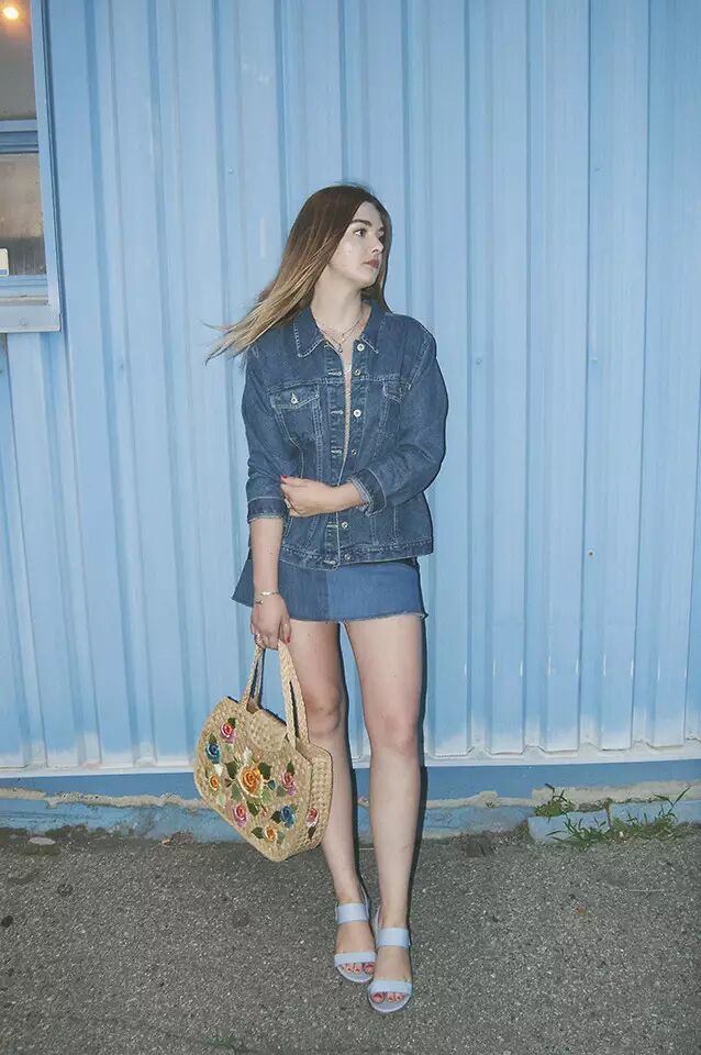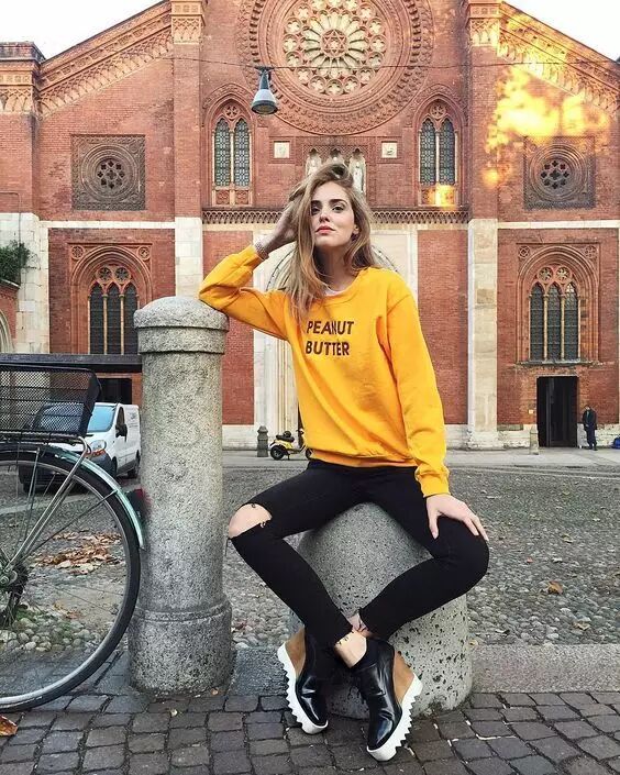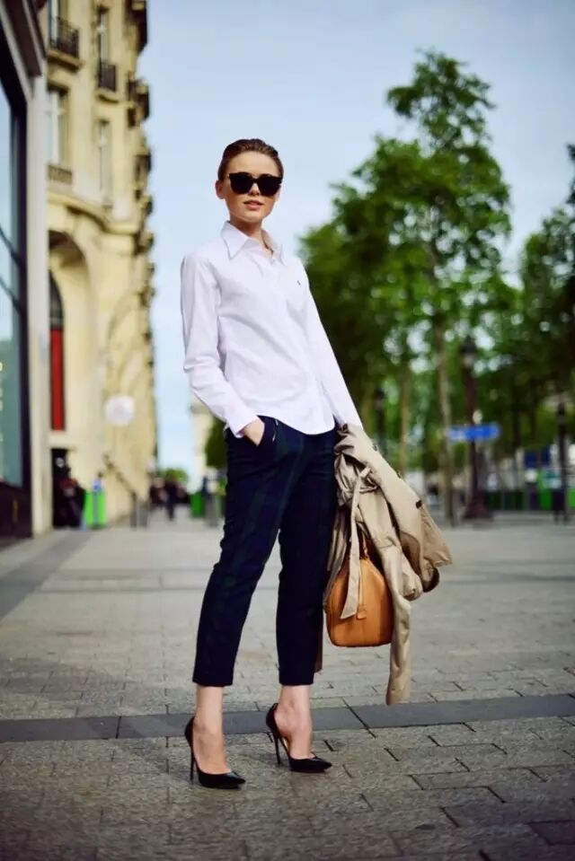 这张照片就更加明显了,上半身看起来很纤细,但是裤装完全暴露了身材的短板,圆润的臀部和大象腿完全暴露了时尚博主Kristinabazan的梨形身材。