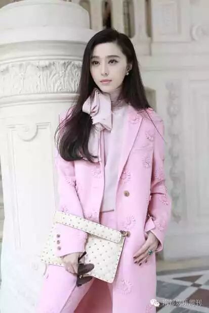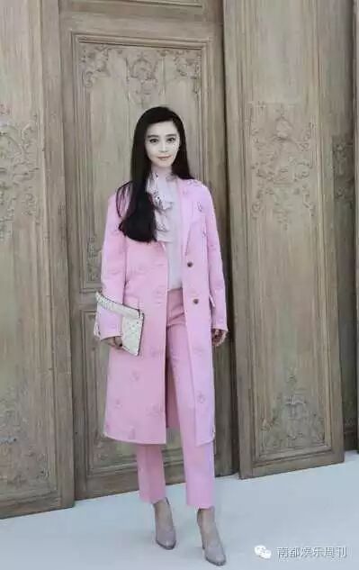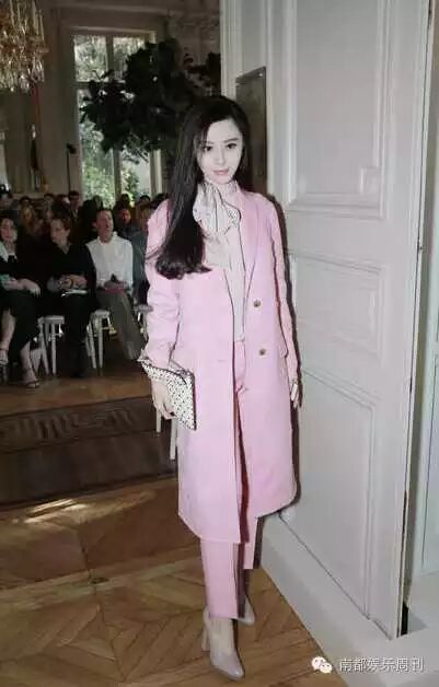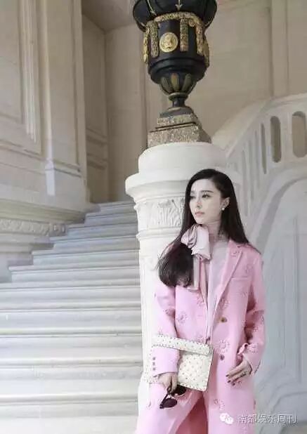 10月2日,范冰冰工作室也晒出一组范冰冰赴巴黎时装周看秀的照片,范冰冰巴黎看秀,穿樱花粉套装秀白皙皮肤。