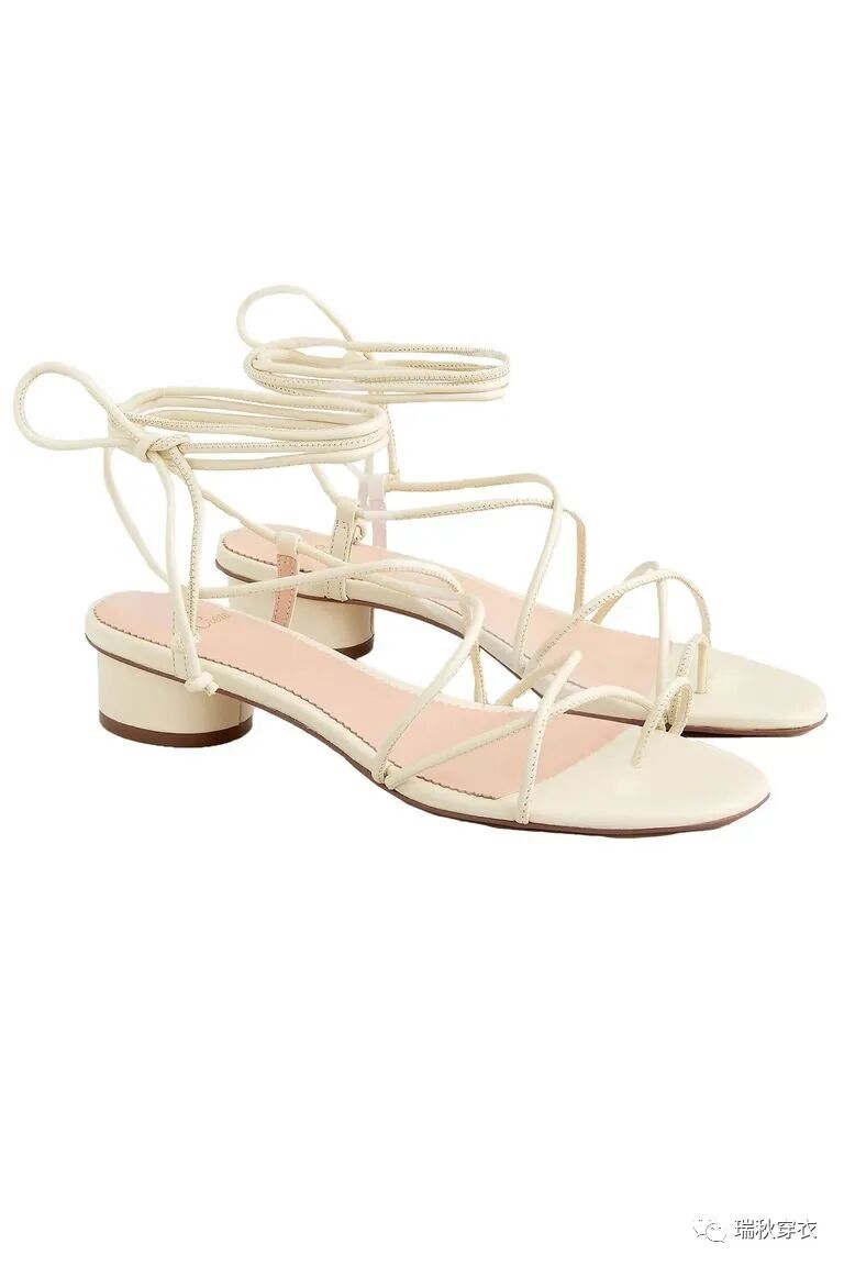 1. J Crew,挑这双鞋是喜欢它的轻巧感。细带,小圆跟都是轻松,活泼的元素。搭配的橘色波点半裙也传递同样的信息。周末外出野餐的话,没有更好的搭配了。