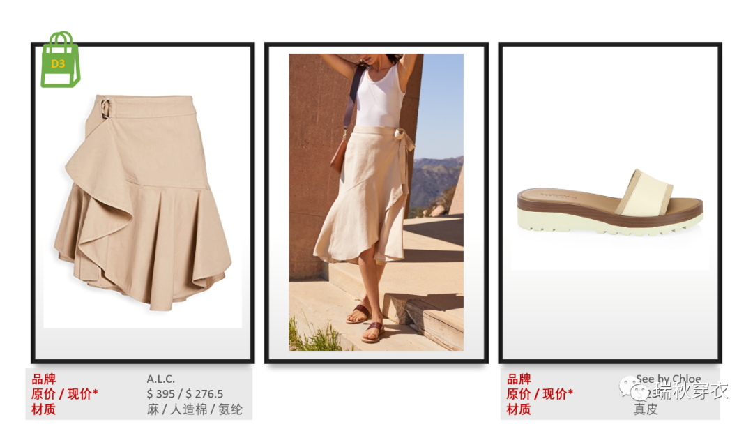 15. See by Chloe, 和上面那双相比,这双更简洁,更grow-up。搭配的衣裙也最好是极简风格的,譬如这条A.L.C.的裹身半裙。上衣可以配示意图里的背心款式,或者白色T恤或衬衣。