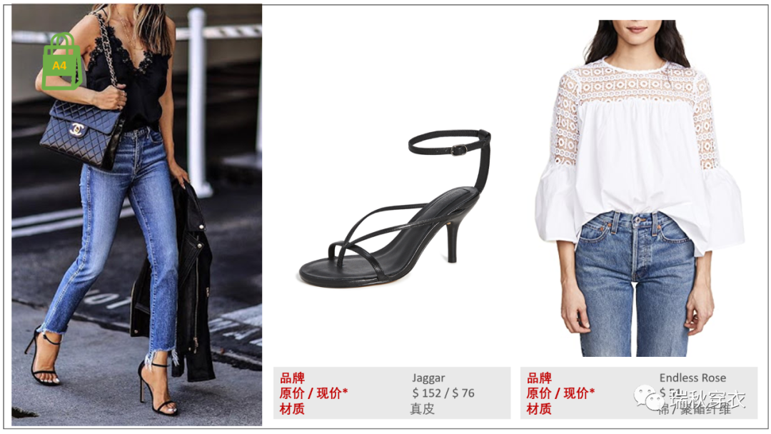 4. Jaggar, 这是想给大家推荐的一个澳大利亚鞋子品牌。成立时间不长。设计走“有小创意的传统风格”,价位中高。这双黑色的极简风高跟凉鞋搭配九分牛仔和黑/白的纯色上衣穿起来是????????的感觉 - 请用下面风格示意图脑补。我挑的搭配单品是一件白色镂空铃铛袖的上衣,衣服下摆较大,看个人身材,塞进裤腰或者留在外面都不错。