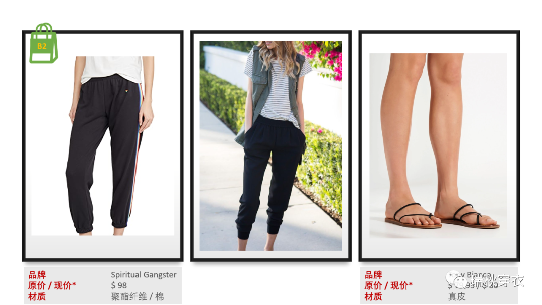 6. Tony Bianco,我的“遛狗鞋”和这双有点像,平底,接触脚底的鞋面光滑凉爽,每次脚丫一伸,各个趾头各就各位,实在是好穿又百搭。如果要穿得有特色些,考虑搭配一条收口的9分慢跑裤(jogger pants),像下面示意图那样的。白色T恤 + 黑色慢跑裤 + 黑色极简凉拖的搭配可以时尚一夏天,不对,N个夏天。