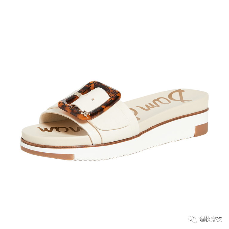 14. Sam Edelman,奶油色 + 豹纹装饰扣的凉拖。相信和我一样懒散怕麻烦的人一定都会喜欢。这次搭配的也是上面出现过的Botkier小白包,除了颜色风格相似外,连豹纹的装饰都很一致,喜欢的美女可以考虑两个一起买,可以搭配多套衣裙。