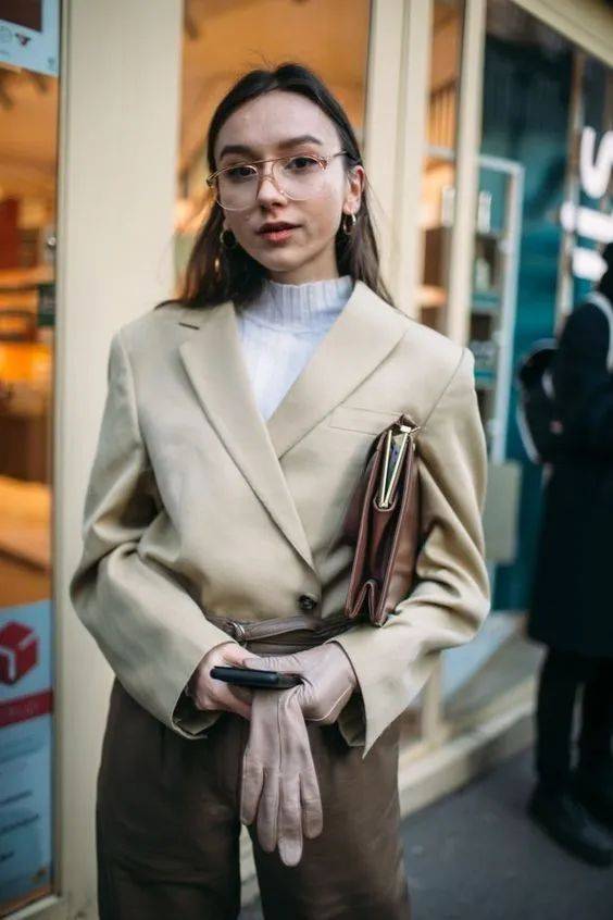 中性化风格单品最典型的特征就是轮廓感鲜明、正肩位或垫肩、面料挺括有型或厚重、色彩偏暗或偏深、甚至还带有金属装饰、明线设计等要素。