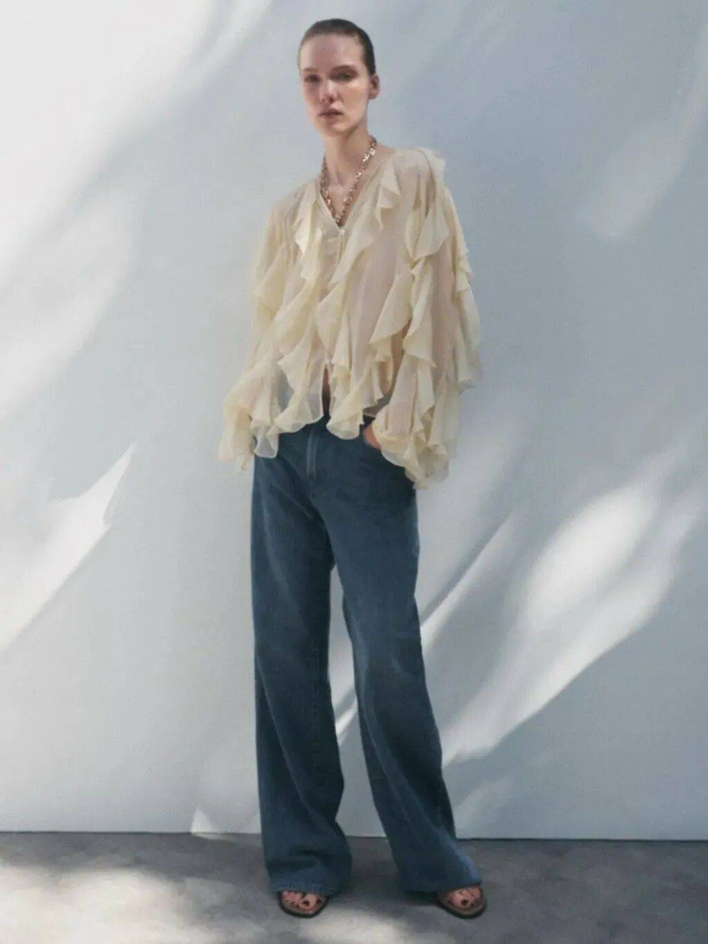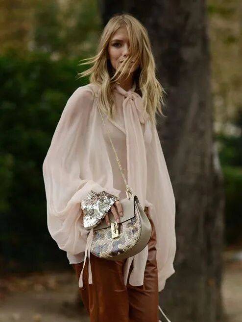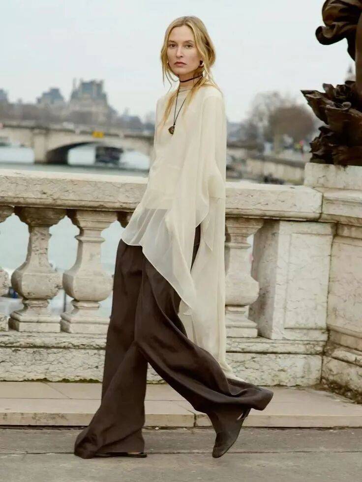 雪纺衫+阔腿裤在秋季穿不要太合适了。