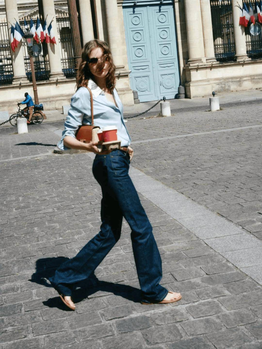 3. 蓝色衬衫+复古牛仔裤:经典重组下的松弛张力
