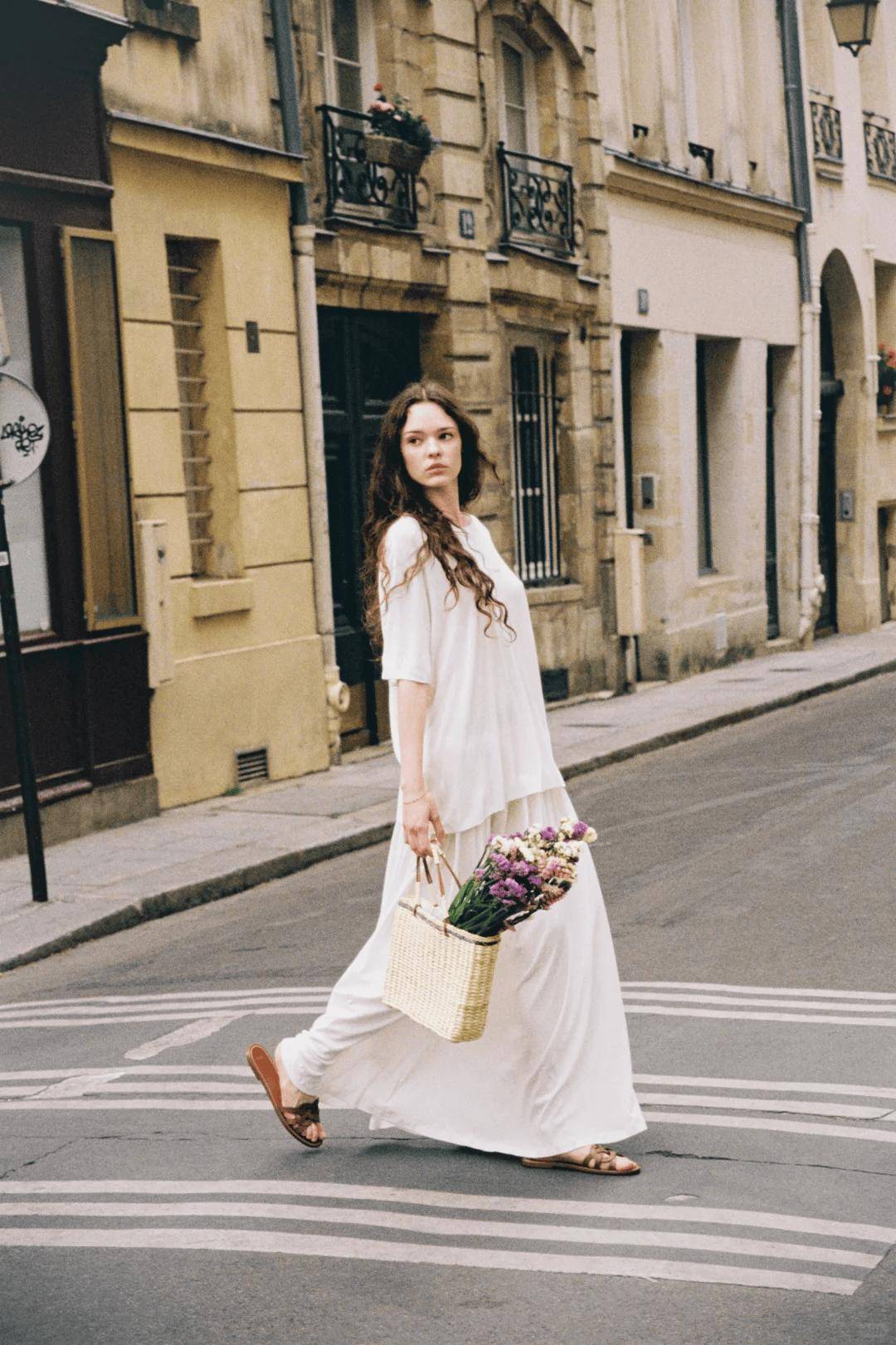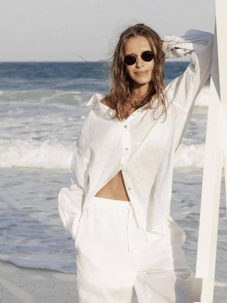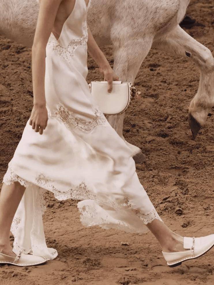 全白穿搭在2025年仍占据主流,但更强调“宽松中的筋骨”。一件质感柔软的白色T恤搭配及踝半裙,通过面料差异营造轻盈层次。脚踏平底凉鞋,步履间尽显舒展自如,诠释“少即是多”的现代哲学,适合追求内心平静的静奢风爱好者。