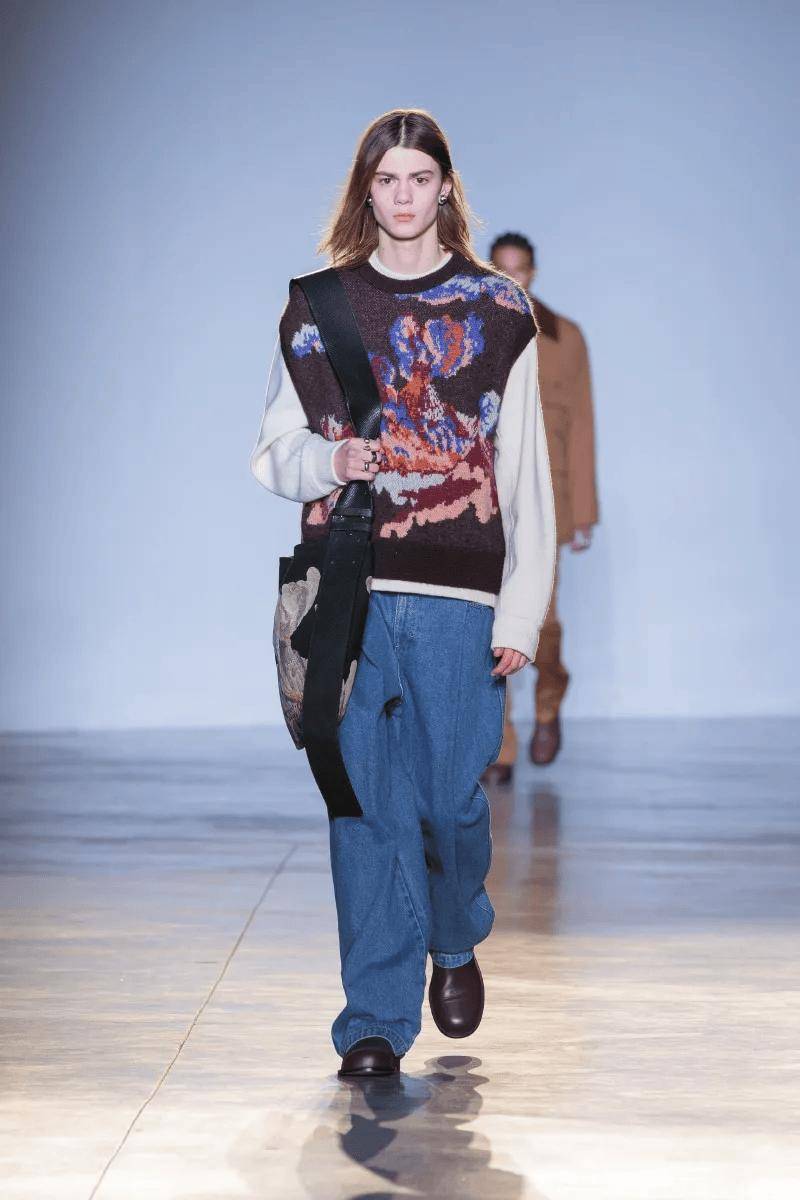 马甲+阔腿裤:几何印花马甲为基础款注入艺术感,搭配水洗蓝牛仔裤,凸显干练与自由并存的摩登气质,适合创意工作者。