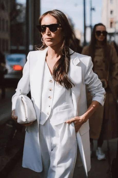 西装马甲是今季趋势重点,可以穿足一年四季,夏天空穿,春秋配衬衫和外套,冬天外面再配大衣。看似懒人的搭配,效果却出奇的好。