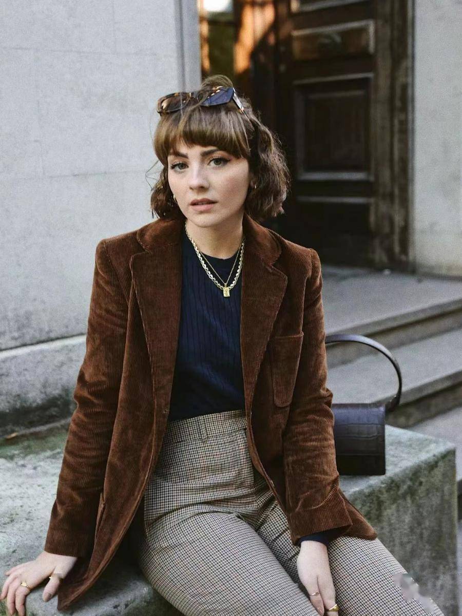 今年的灯芯绒外套早不是 “老气款”,利落版型 + 美拉德色系,穿起来既有古典气质,又显年轻活力: