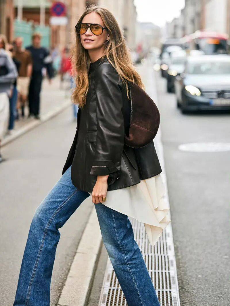 内搭轻针织或简洁白衬衫,下装可配高腰牛仔裤或顺色半裙,让皮质的硬挺与面料的柔软形成对话。