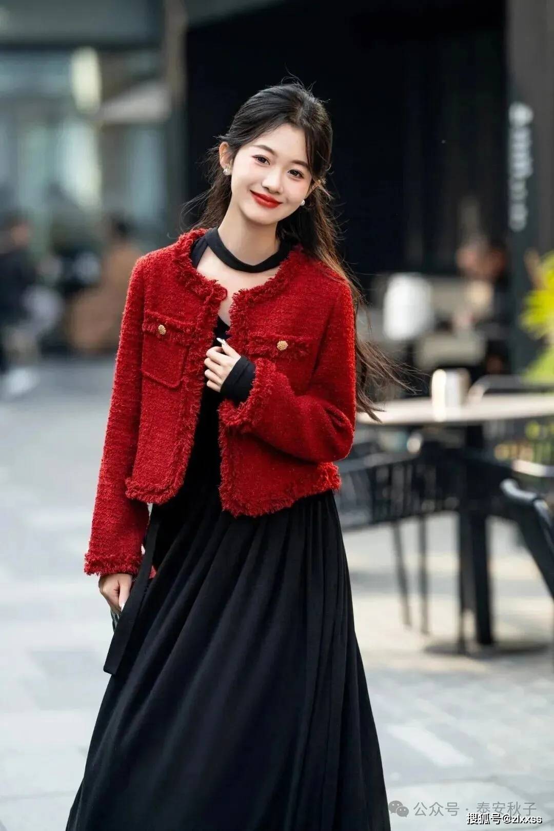 番茄红色的小香风外套,热烈显白又有一种迷人的魅惑感。