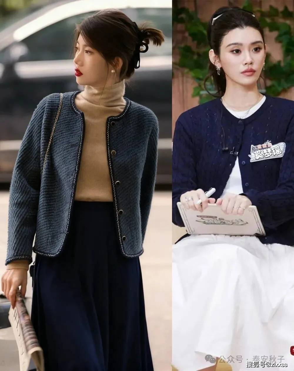如果你是性格温柔的女生,很推荐你用轻盈裙装来配小香风外套,会是一种优雅又女神的范。