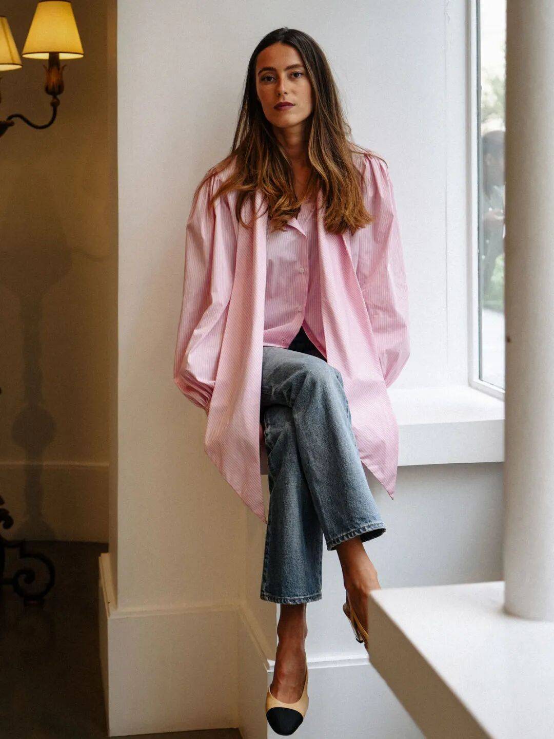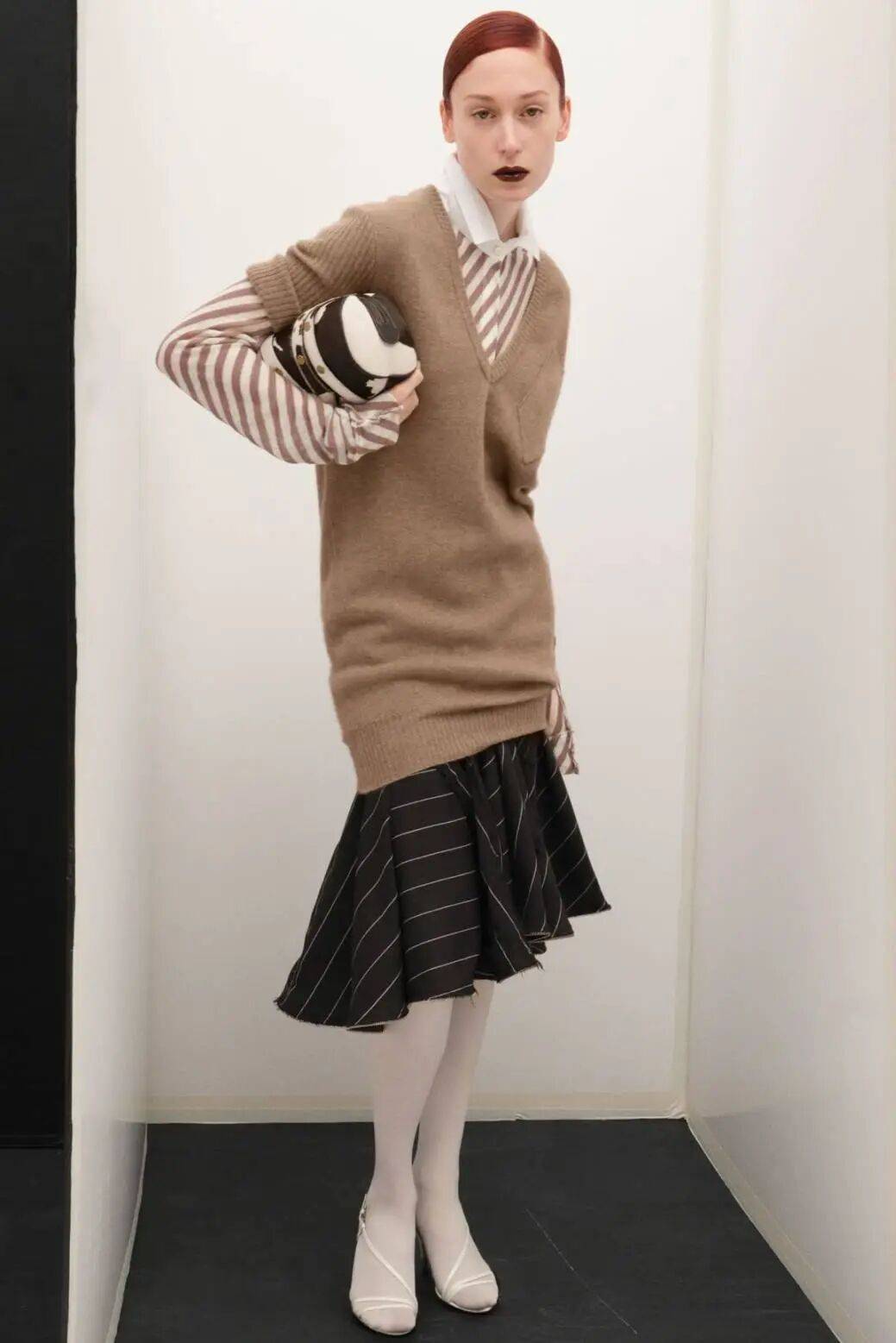 并且在叠穿的思路中,大V领毛衣叠衬衫也会显得更为放松,让学院风、知识分子风,都融入了一丝不刻意的时髦感。