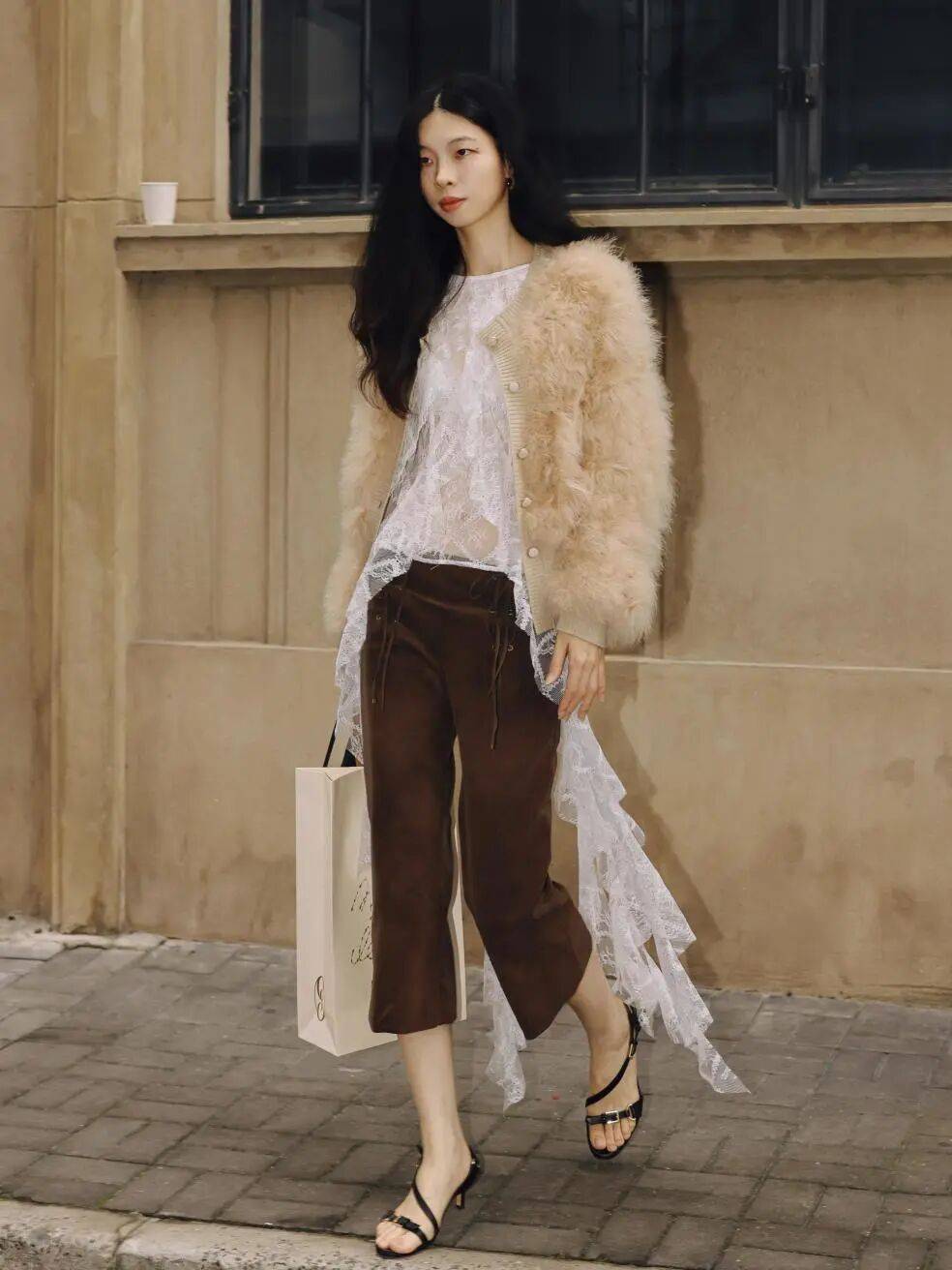 蕾丝内搭+皮草外套、蕾丝内搭+风衣......让叠穿层次浪漫又有氛围。