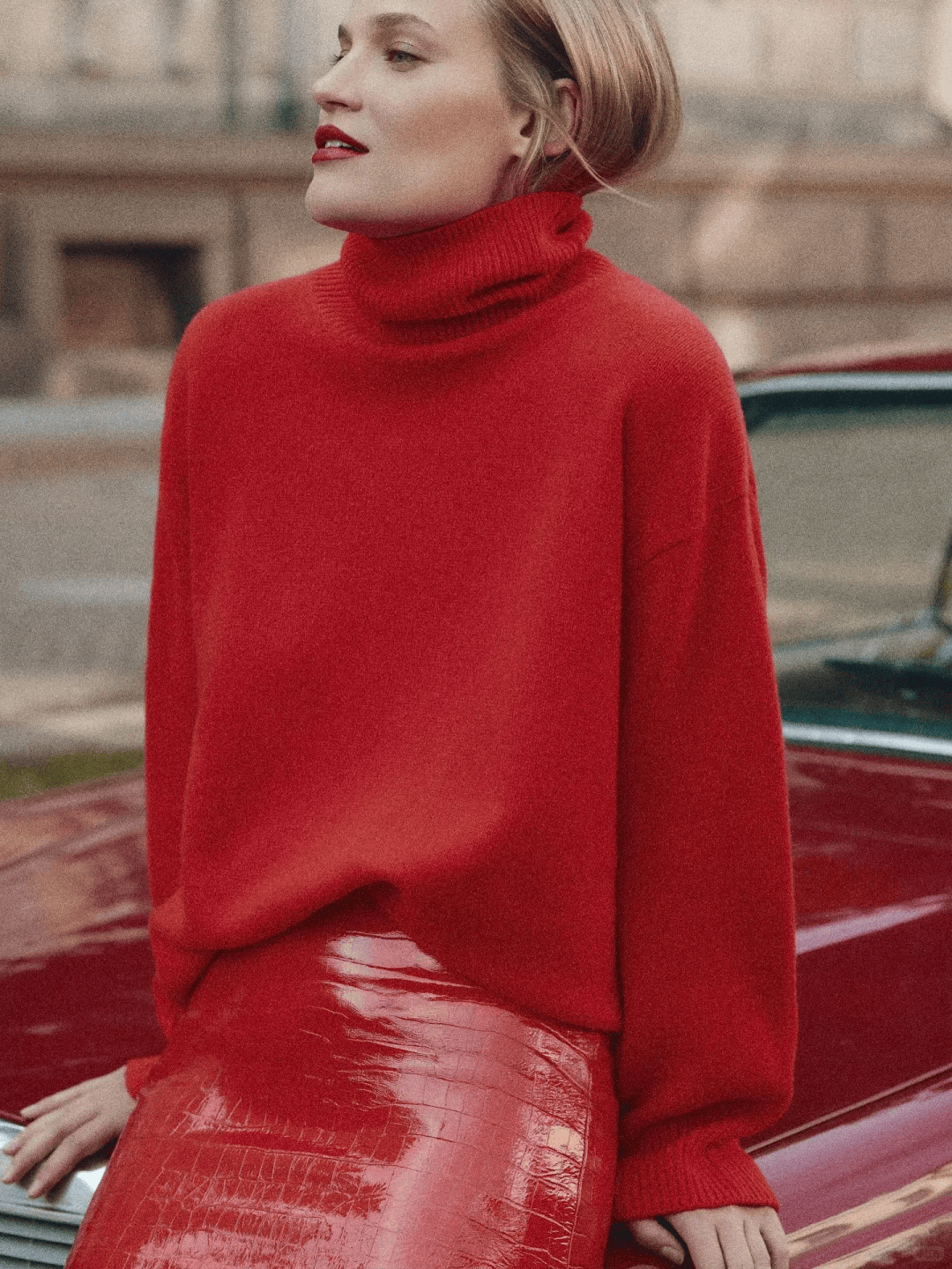 所以我推荐你至少要拥有一件红色上衣,作为内搭叠穿或单穿都很出彩。