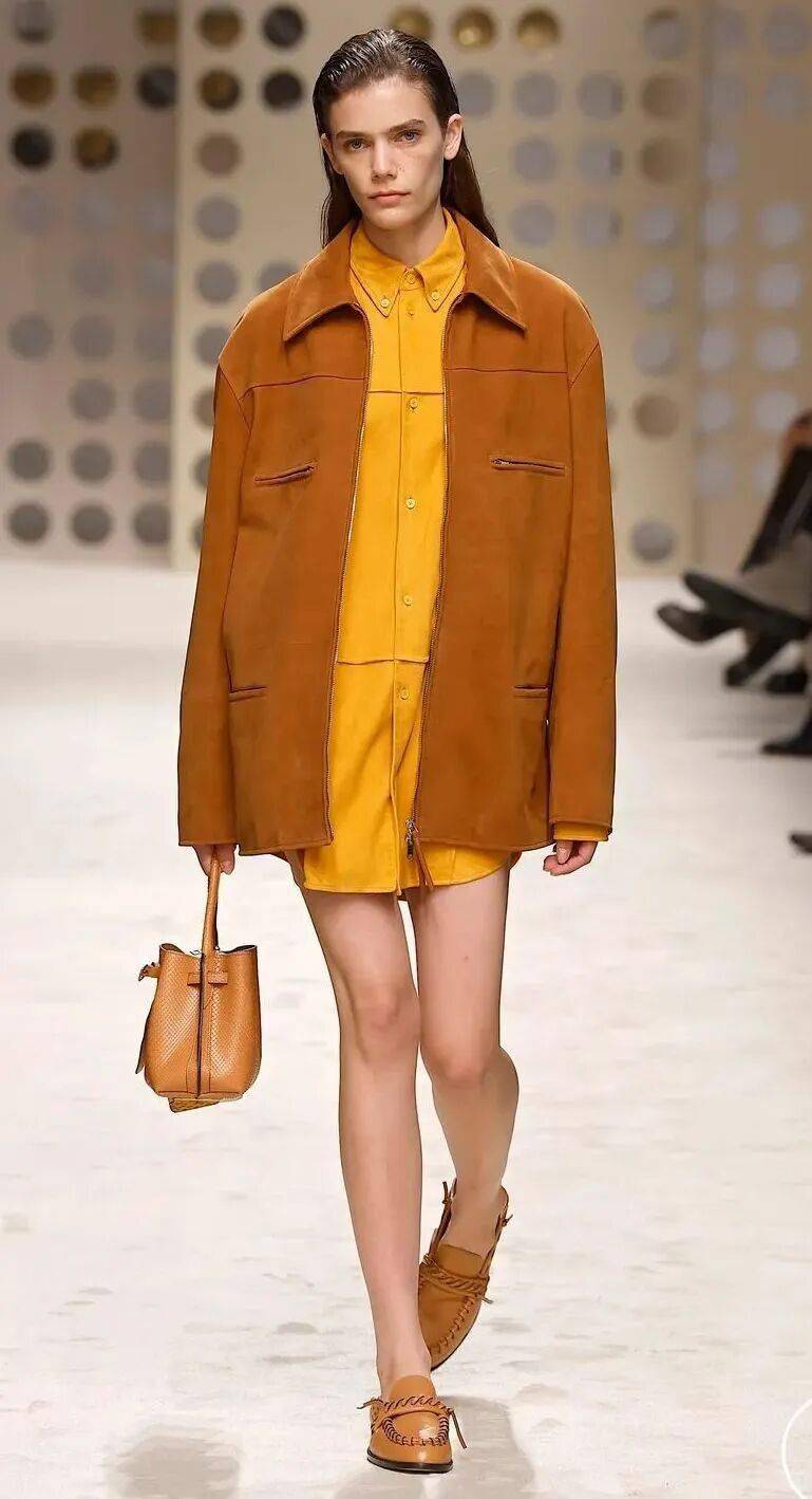 小面积橙色跃动于大面积的棕色之中,如同冬日里的一缕暖阳。一只亮橙手袋、一双短靴,或一件内搭针织衫,皆可成为造型焦点。毫不费力,却足够吸睛。