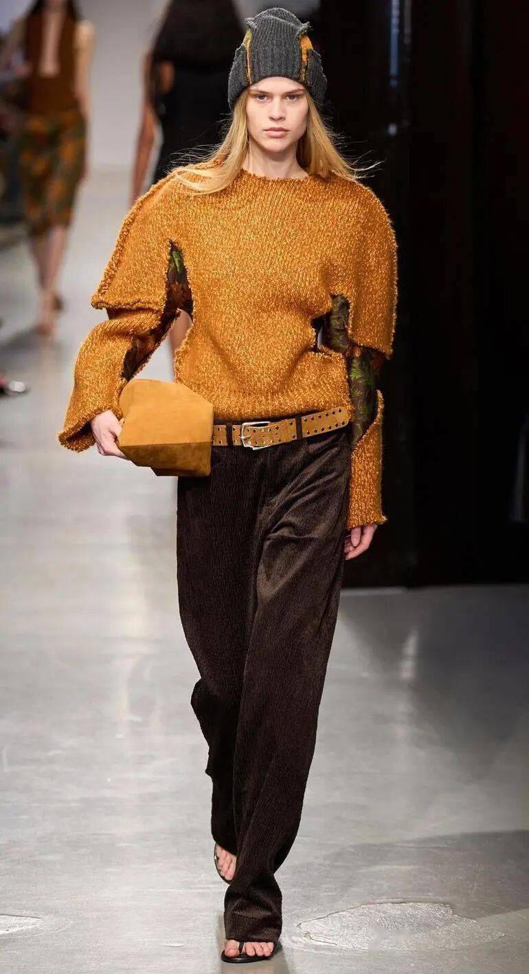 在MiuMiu×New Balance的联名系列中,橙棕配色释放出青春活力;Tod’s、Bottega Veneta等品牌在2025-2026秀场上,也将其广泛运用于大衣、套装与配饰之中,诠释出“衣着与情绪共鸣”的新趋势。
