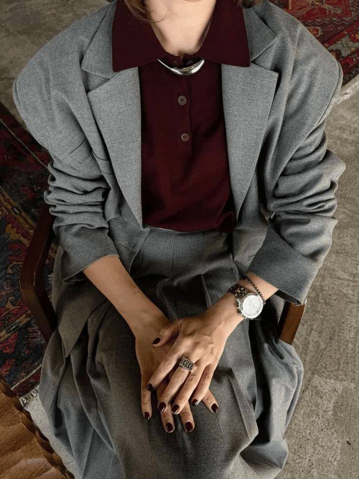 相比于情绪强烈的黑白色彩,灰色呈现出的克制与独立,更符合当代女性对智性美的定义。