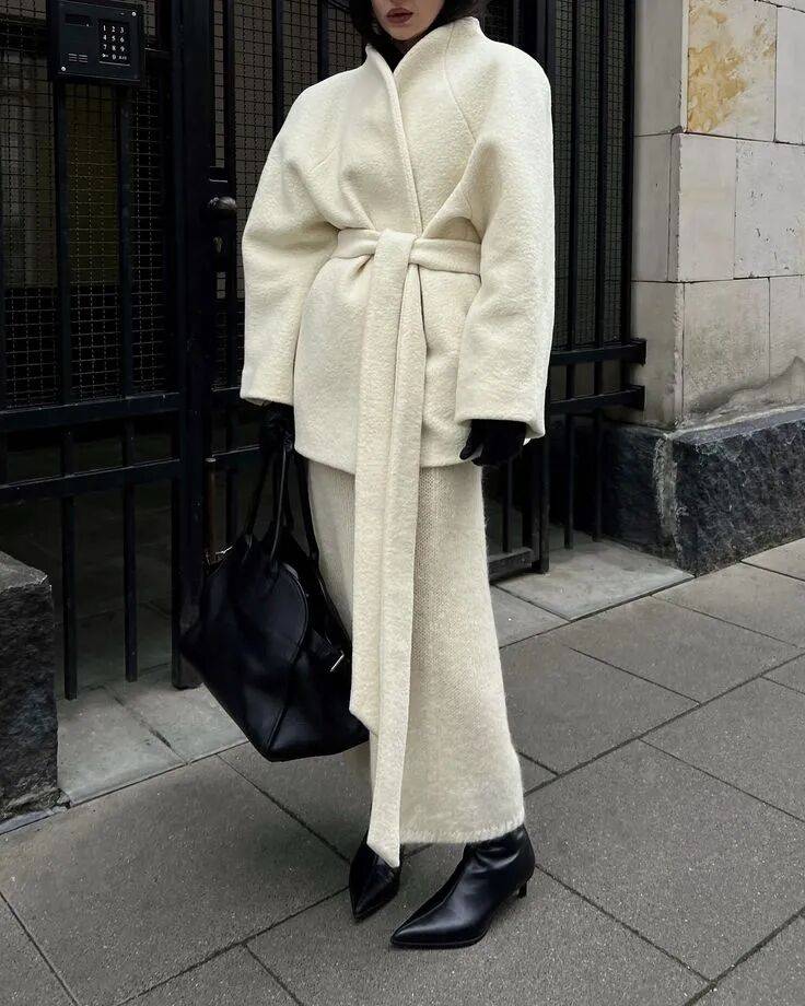 它不像黑色大衣那般沉重肃穆,而是以一种轻盈而强大的方式存在,仿佛为你周身笼罩了一层柔光滤镜。