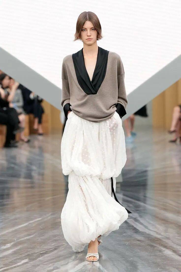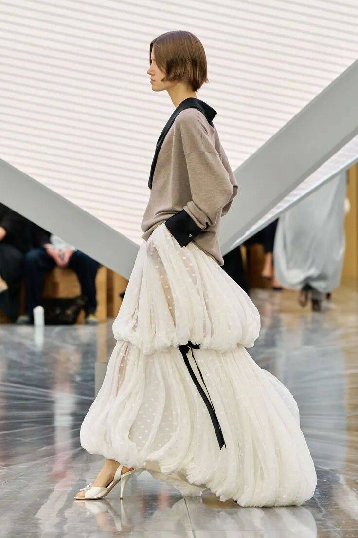 它的轻盈感或柔软感能很好地平衡秋冬的厚重,随着步伐摇曳生姿,如同书写一行移动的诗。