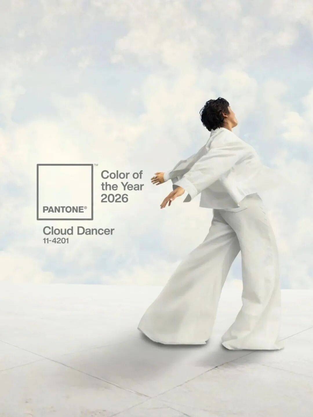 上周,国际色彩机构潘通(Pantone)正式揭晓2026年度流行色——「云上舞白」(Cloud-Dance White)。