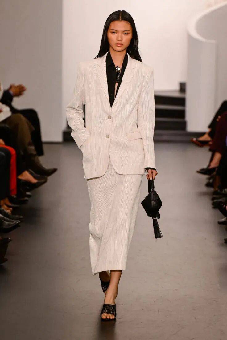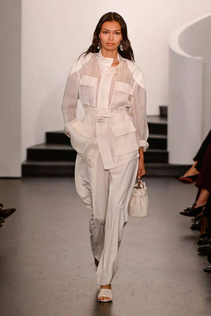 以无可挑的剪裁,用完美的西装、挺括的棉质阔腿裤、一袭线条流畅的长裙,彰显出一种历经时间淬炼的经典,品味,不动声色的奢华。