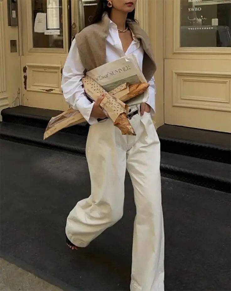 一条版型优秀的白色长裤(无论是直筒、微喇还是阔腿),是打破穿搭沉闷、提升气质的利器。