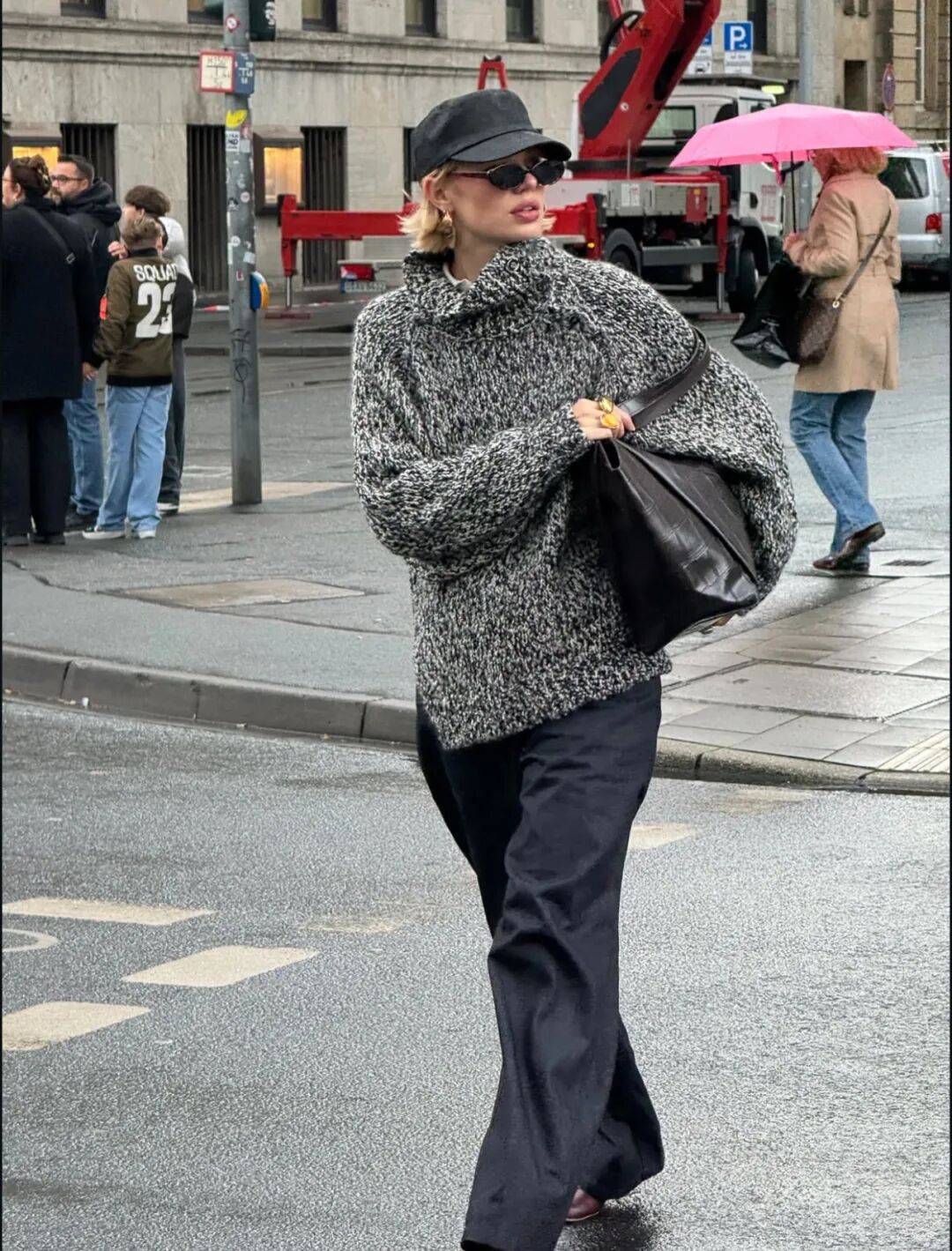 冬天尤其适合戴大帽子,因为冬装整体量感比较大,用大一点的帽子也 不容显得头肩比不好。▼