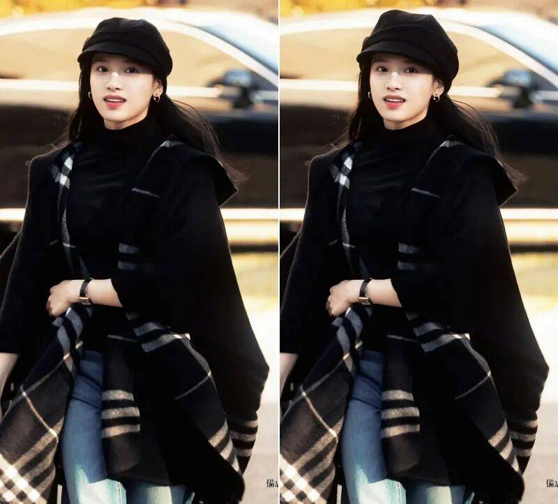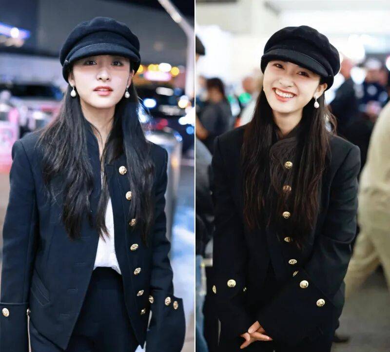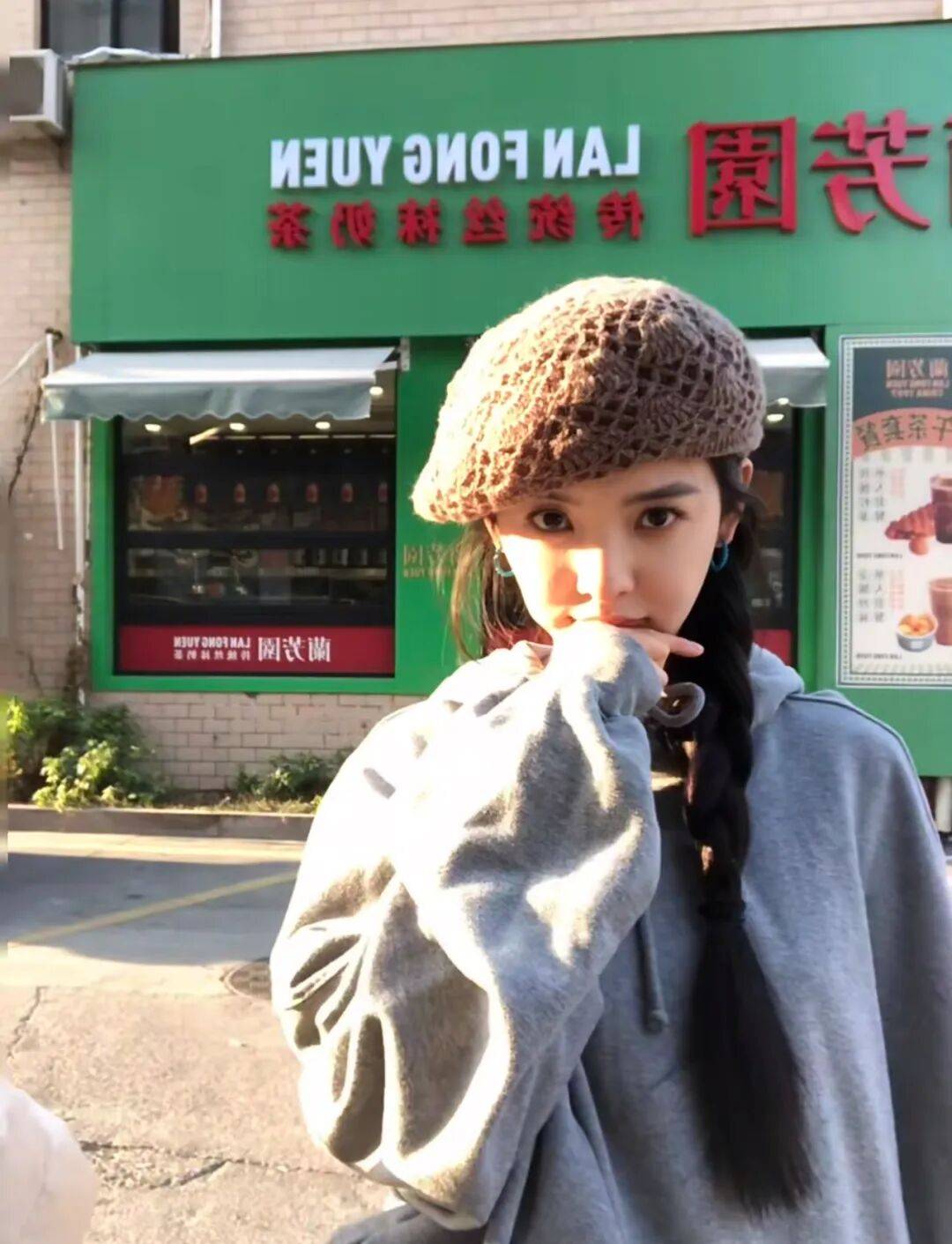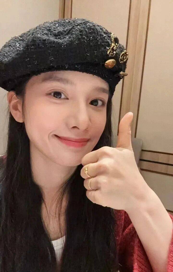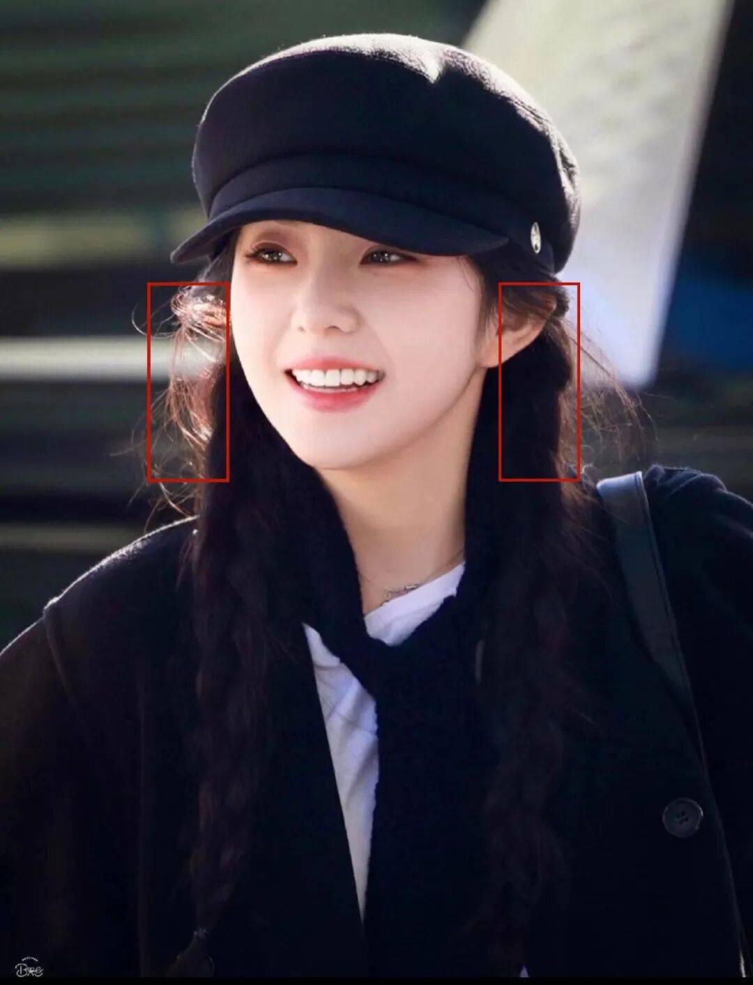 选大帽子最直接的好处就是:一秒塑造出 头包脸效果。 对比下,右边是原图;左边把张婧仪的帽子P小了,以她的颜值当然这样也是好看的,但颅顶低了以后 美人氛围被削弱了几分(左)。 ▼
